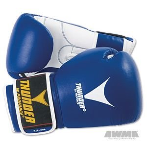 Thunder Leather Boxing Gloves.Vented Palm.Available in 12, 14, or 16 oz.Hook and Loop Closure.Blue with White Palms. Features a pre-curved form fit design with flex grip palm. Ultra cuff wrist strap with hook and loop closure. Thumb-lok feature offers proper form while punching. Foam core with cotton lining. Blue with white palm. Disclaimer:Boxing and Martial Arts are contact sports. Users of this equipment are subject to personal injury. These products have a degree of protection but are not warranted to protect the user from injury.Striking an object improperly may cause injury. Do not strike any object without proper training and instruction. Wearing a mouth guard is always recommended when participating in any athletic activity.
