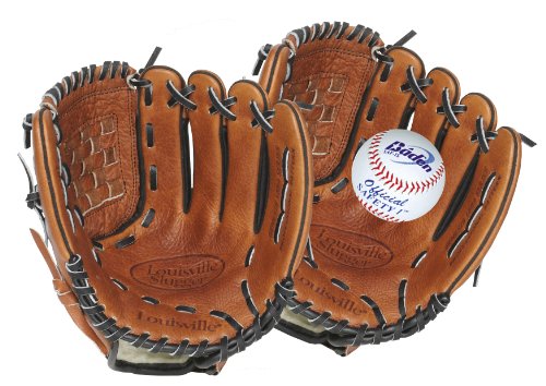 Louisville slugger gants + balle pour receveur de baseball junior cuir de baseball argent aluminium léger + gants de baseball junior cuir / noir / blanc 27 cm.